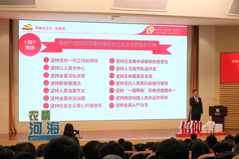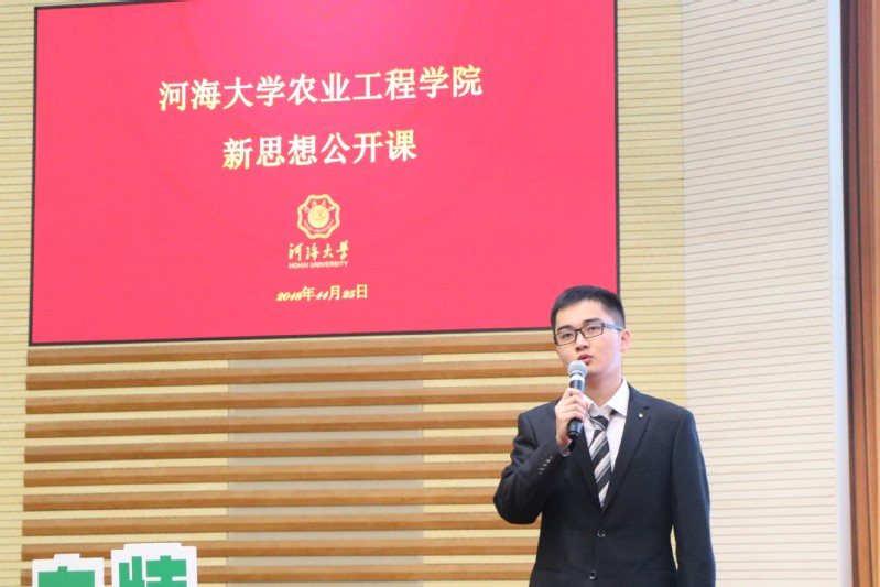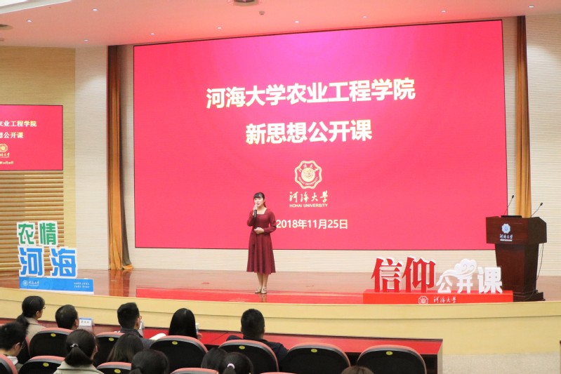 2018年11月25日上午九点半,河海大学农业工程学院信仰公开课之新思想公开课活动在西康路校区闻天馆108隆重举办。农业工程学院党委书记陈毓陵、河海大学校团委副书记戴媛媛、江苏省学联会主席刘祚人等领导出席本次活动,农业工程学院本科、研究生全体同学参加了本次公开课。