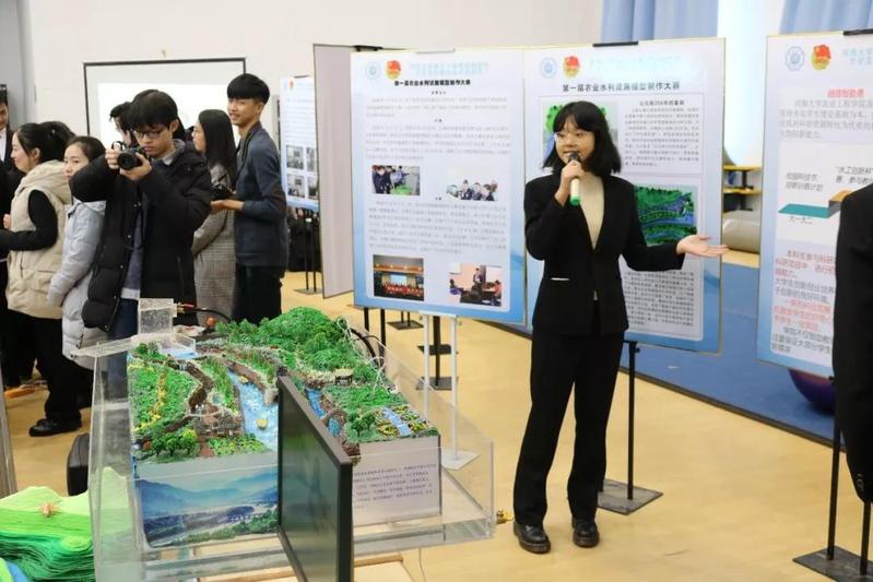 展会上,威廉希尔中文网站平台展示了第一届农业水利设施模型制作大赛的优秀成果。为了增强展览效果,我们特意邀请到了相关作品的创作同学,结合精致的实体模型和3D建模动画,进行了细致地讲解,生动真实地展现了都江堰的构造及原理。