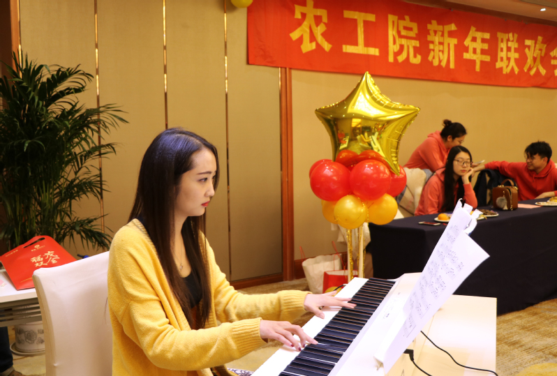在欢快的《春节序曲》中,主持人薛璟老师和陈盛博后宣布联欢会开始,并邀请李同春院长发表新年致辞,随后各研究所组织编排的节目依次出场。张睿老师的一首男高音《步步高》唱出了所有人的新年希冀,徐俊增副院长领队的三句半《伟大祖国新农风尚》和灌排所表演的诗朗诵《中国奇迹》道出了农工教师对国家更强盛、学院大发展的期盼;学院党委陈毓陵书记独唱的《父亲的山母亲的河》和廖林仙老师携女儿合唱的《梨花又开放》倾诉了儿女们对父恩母爱的崇敬;刘笑吟老师演奏的《水边的阿蒂丽娜》等经典钢琴曲婉转悠扬,使大家感受了西方高雅艺术的感染力,而刘慧老师与儿子合唱的《长歌行,中国字》轻松舒缓,使大家体会到中华传统文化的亲和力;李建老师和于晓飞助管的相声《大话2018》包袱不断,水土所的情景表演真假难辨,引起全场阵阵笑声和掌声;两办8位“俊男靓女”和“助演”吉安