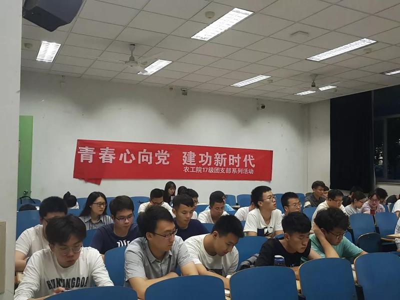 514日晚,为纪念五四运动一百周年,传承发扬五四精神,农业工程学院17级团总支举行了青春心向党,建功新时代主题活动。17级全体团员齐聚致用119,认真聆听优秀团员刘则雯带来的团旗下演讲,并认真学习农工院团委书记、15级、17级辅导员薛璟老师讲授的主题微团课。