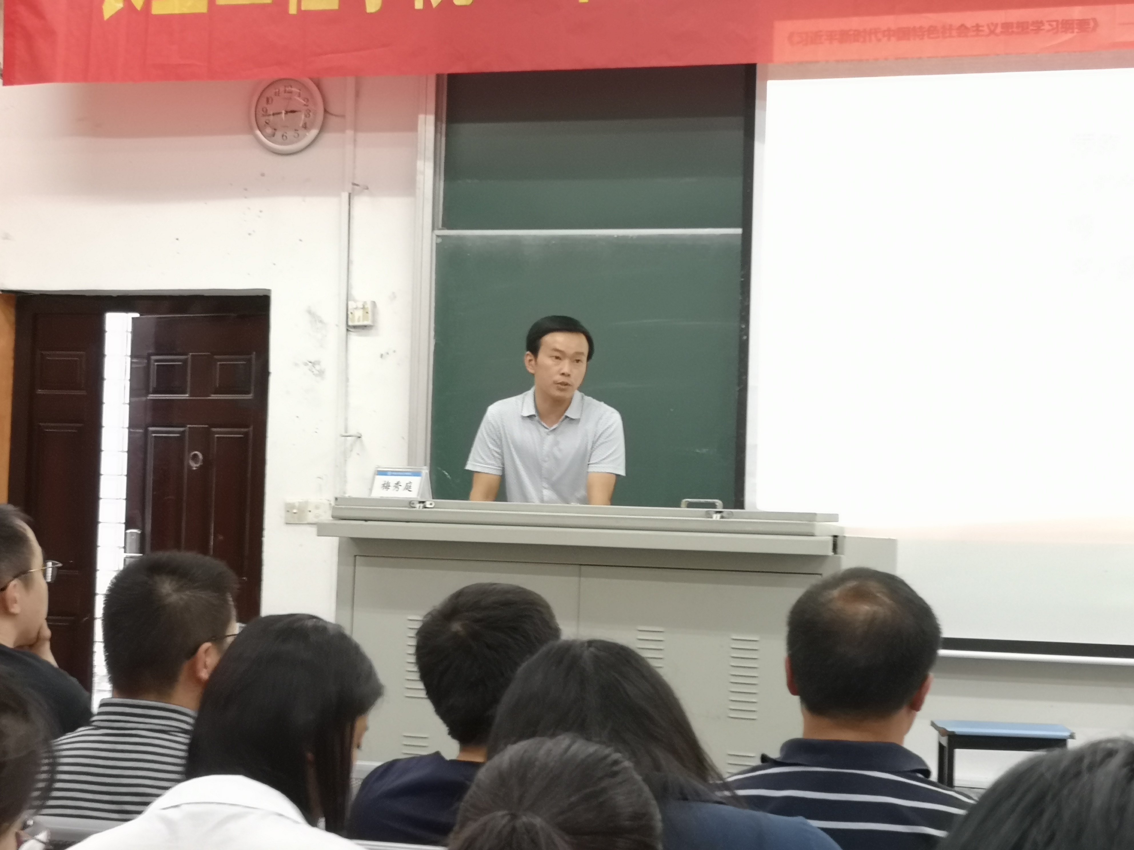 9月19日,为切实增强“不忘初心、牢记使命”主题教育集中学习研讨的针对性、实效性和感染力,农业工程学院举行主题教育辅导报告会,邀请中共江苏省委党校副教授、博士梅秀庭就学好用好《习近平新时代中国特色社会主义思想学习纲要》——深入开展“不忘初心、牢记使命”主题教育作辅导报告。会议由学院党委副书记郑润主持,学院全体党员参加此次报告会。