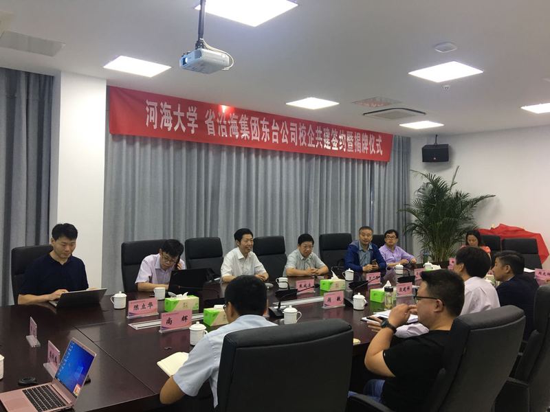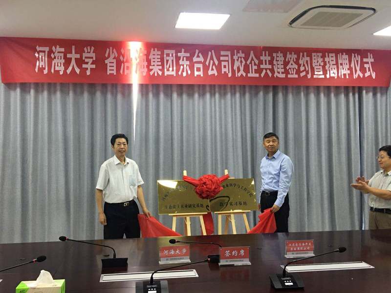619日,威廉希尔中文网站平台与江苏省沿海集团东台公司举行产学研合作签约暨生态盐土农业研究基地与教学实习基地揭牌仪式。江苏省沿海集团东台公司殷建祥总经理,端敏副总经理,工程部陈杰峰经理,河海大学农工院朱成立副院长、徐俊增副院长、郭相平教授、陈立华副教授,江苏省农业农村厅耕地质量与农业环境保护站殷广德首席专家,南京农业大学赵耕毛教授等人出席揭牌仪式。朱成立副院长与殷建祥总经理分别致辞并共同为生态盐土农业研究基地与教学实习基地揭牌,朱成立副院长与端敏副总经理签署合作协议。