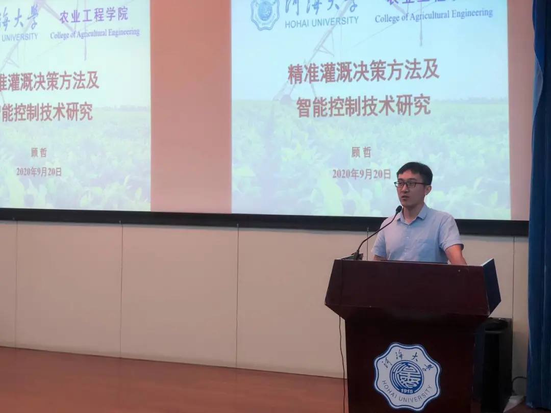 9月20日下午,威廉希尔中文网站平台在江宁会议中心二楼报告厅隆重举行河海大学丰收节活动之“农情河海”学术论坛系列报告——智慧农业专题。本次报告会由学院副院长徐俊增主持,受邀学者南瑞水利水电科技技术有限公司高级工程师高磊、中苏科技股份有限公司高级工程师颜爱忠、河海大学博士后顾哲以及全体研究生参加了本次活动。