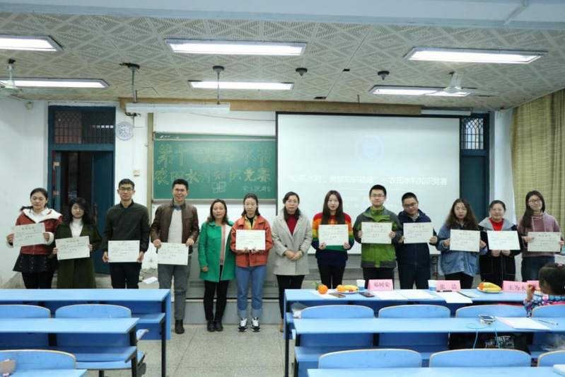 最后是颁奖环节,本次知识竞赛共评选出一等奖1名,二等奖2名,三等奖3名以及优秀奖5名,在欢快热烈的氛围中,评审老师为获奖选手颁发证书并合影留念,本次农田水利知识竞赛圆满结束。