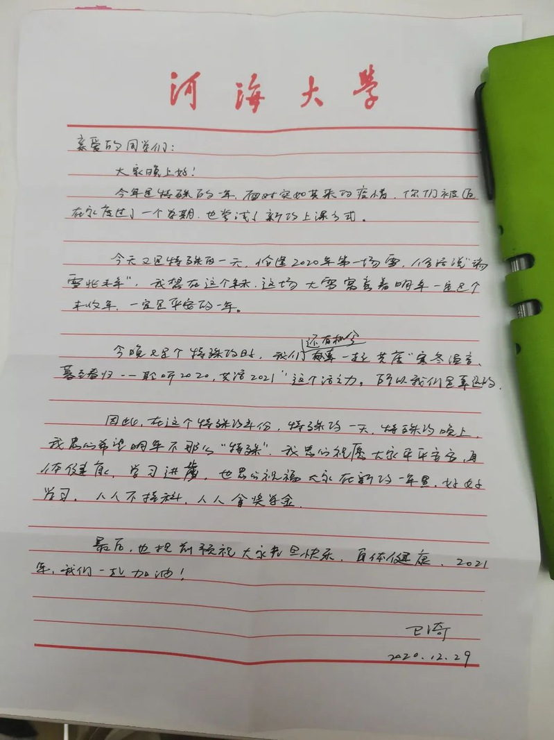 班导师向学生代表发放新年信封,并为大家送上美好的祝愿。2021年班导师将与同学们一起砥砺前行,用努力换回2020年失去的时间。