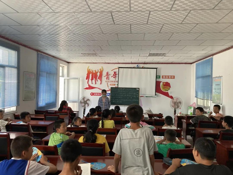 支教团首先在灵武市沙坝头村开展了支教活动,为当地学生辅导课业,教授课外知识。在初来乍到的几天里,支教团成员与当地学生们进行了别开生面的开营仪式,很快熟悉彼此并开始了暑期学习。首先我们为他们辅导功课,成员们耐心辅导、细心教学,工作开展顺利。其次,支教团带领学生们学习了心理健康课、水文化课程、军事教育课等课程,拓宽了孩子们的视野,激发他们学习的热情,并建立了图书角供学生们阅览学习。最后还进行了趣味实验、学习折纸、练习普通话等课外活动,提高他们的动手能力,引导他们将实践与学习相结合。此外,我们的指导教师薛璟老师来到支教点指导队员们更好的开展支教活动,社区民警对孩子们进行安全教育。后期虽然因南京疫情无法继续进行支教活动,但支教团成员们在短短的几天里较为出色的完成了教学任务,并和当地学生建立了深厚的感情。