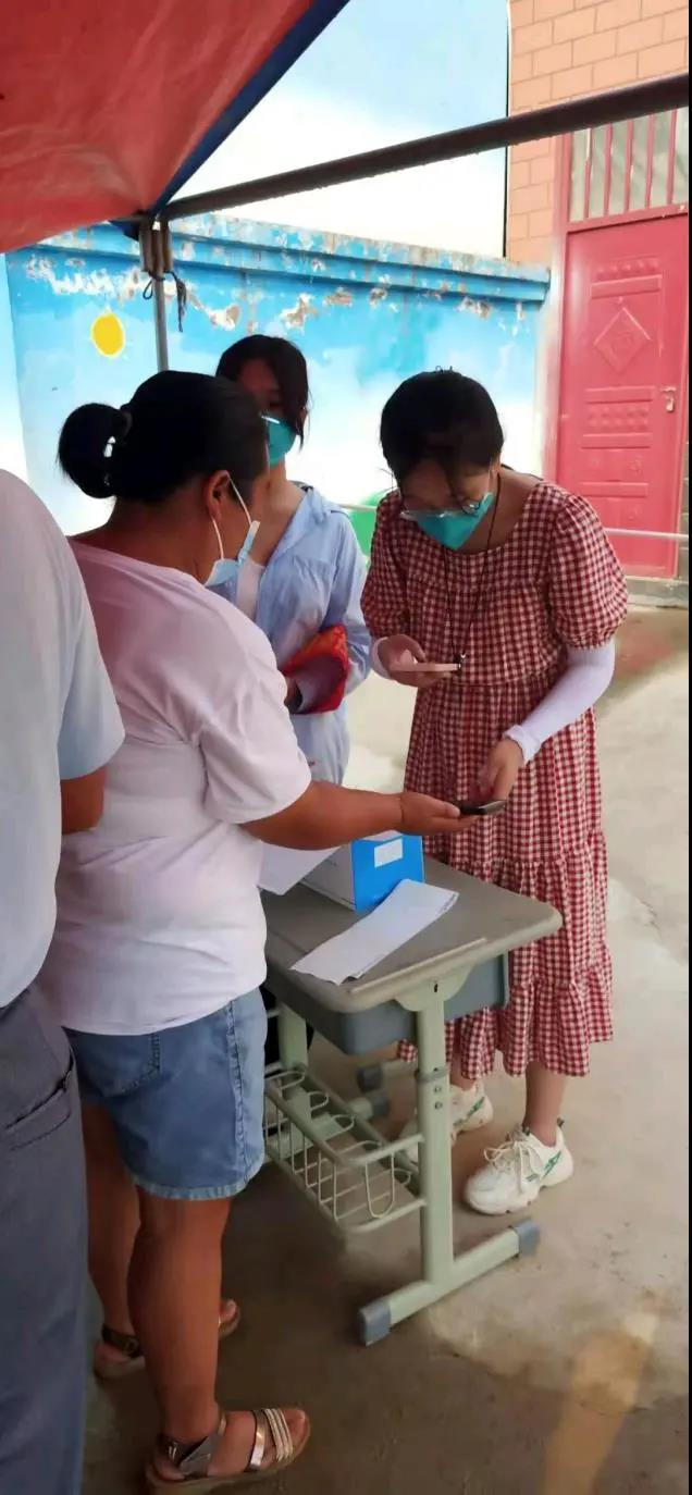 志愿者来到所在村庄,进行文档整理编辑以及核酸检测工作。疫情再次席卷而来的情况下,全员核酸检测是非常重要的一项事情,作为村里的一份子,刘雨婷同学也在用自己的方式为村庄发展出一份力。
