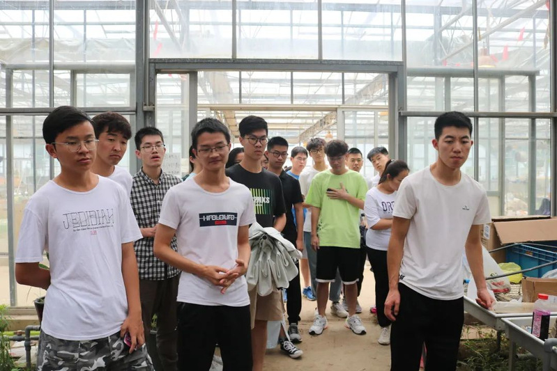 每个班选出的参与种植工作的学生带着工具,在2点30分准时到达节水园区的大棚内。