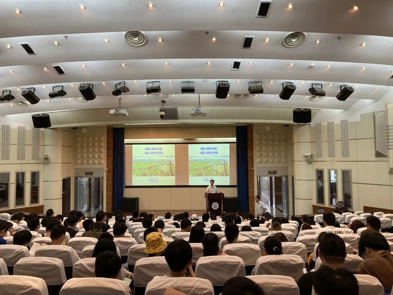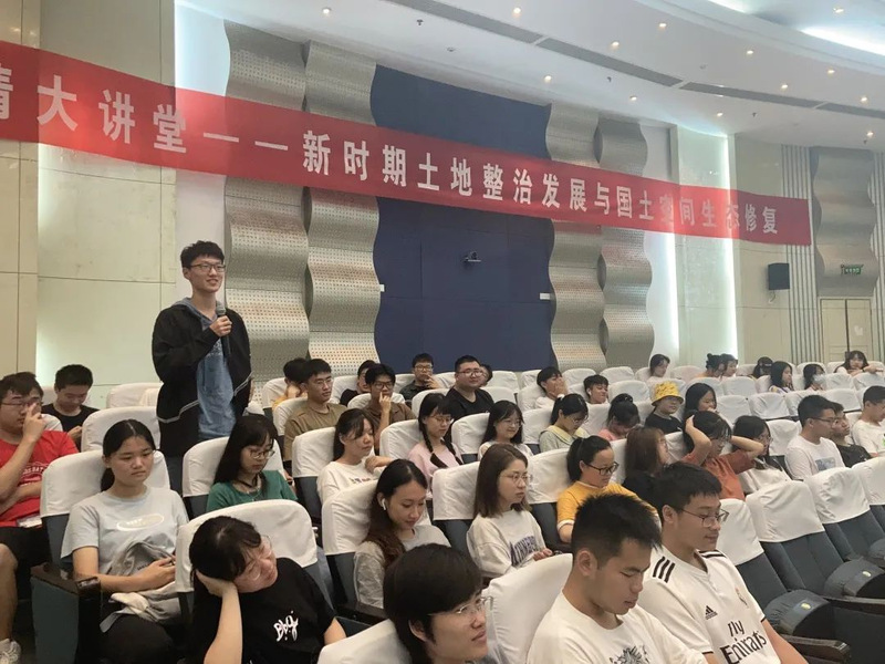 红举主任开场时首先抛出“何为土地?”、“如何理解生态?”等小问题与同学们拉近距离,使得同学们对李红举主任宣讲的核心内容产生了浓厚兴趣。李红举主任追溯历史,精彩回顾了土地整治发展历程,同时结合国家政策背景、中国地理、自然资源概况、国外土地治理等知识点,深入浅出、生动详实地解读了“我国土地整治业务体系的形成、我国自然资源分布与生态问题、新时期土地整治有关任务思考、山水林田湖草生态保护修复工程实践和全域土地综合整治业务实践”等五个方面内容,使同学们深深感受到专业魅力及其广阔的发展前景,现场就土地整治专业未来就业和考研等问题提出咨询,李红举主任都亲切耐心地一一作了解答。
