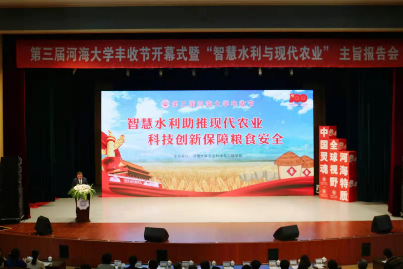 开幕式当天还举办了“智慧水利与现代农业”分论坛学术报告会,中国十大灌区图片展和“庆丰收感党恩,青春梦启新航”文艺演出暨迎新晚会。回首党的百年征程,亿万农民在党的坚强领导下,实现了全面小康的历史性跨越。作为河海大学的师生,我们有责任、有义务肩负起历史的使命,时代的重托,为全面推进乡村振兴、加快水利现代化和农业农村现代化贡献一份力量,为实现中华民族的伟大复兴不懈努力!