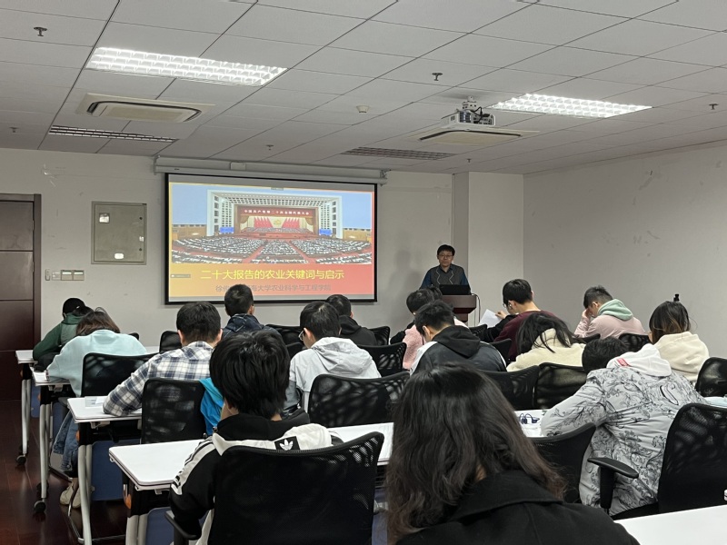 2022年11月5日,威廉希尔中文网站平台副院长徐俊增为本科生党支部和两办党支部师生党员讲授“二十大报告的农业关键词与启示”专题党课。