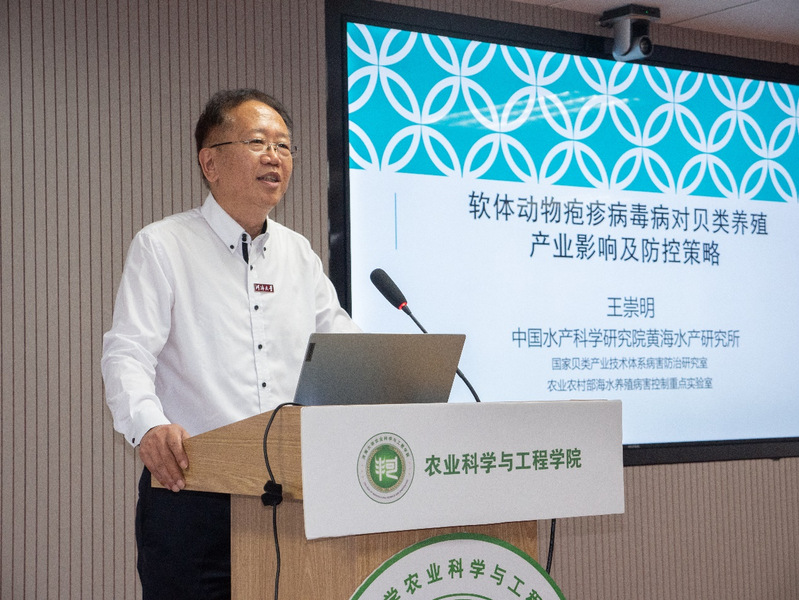 任仪式后,吴崇明教授和徐惠民教授分别作了题为《软体动物疱疹病毒病对贝类养殖产业影响及防控策略》和《数字技术应用——助推企业转型发展》的报告,两位教授的精彩报告赢得了在场师生的热烈掌声。