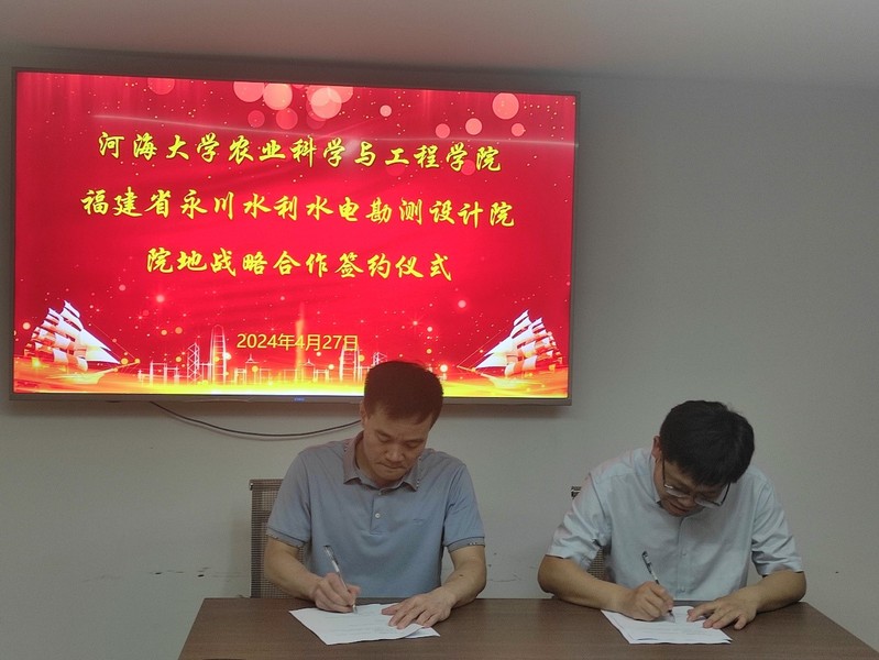 427日,刘兴平书记、徐俊增院长等一行赴福建省永川水利水电勘测设计院有限公司开展调研交流并签署战略合作协议。学院副院长佘冬立、福建省永川水利水电勘测设计院有限公司总经理黎永明、副总经理范洪荣、副总经理刘长隆、总工钟署光以及相关部门负责同志参加了签约仪式。