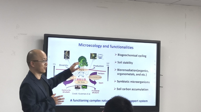 58日,学院于行政楼419举办微生物眼中的界面互作过程及微生态方面学术报告会。本次报告会特邀中国农业大学土地科学与技术学院王钢教授讲述。报告会由学院副院长佘冬立教授主持。学院老师以及各年级研究生积极参与本次报告会。