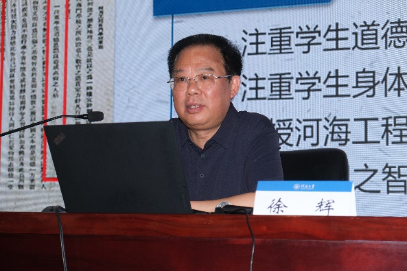 在人才培养部分,徐辉教授对河海大学在百余年来的发展历程中形成的“河润万物、海纳百川、精研求真、务实重行”的办学特质进行了详细解读。河海大学不断建立健全与新一轮科技革命和产业变革相适应,与国家发展战略、水利现代化建设需求相适应,与学科交叉融合发展相适应的人才培养模式,逐步推进工程教育改革、培养模式改革,按照水利部对学校发展提出的“巩固、延展、超越”的六字要求持续创新发展,着力培养具有“中国灵魂、全球视野、河海特质”的跨学科、复合型高素质人才。