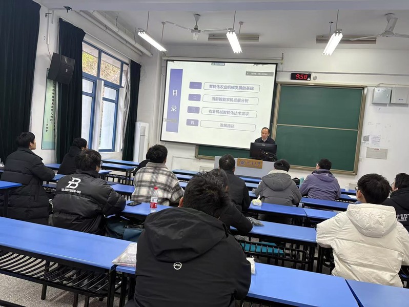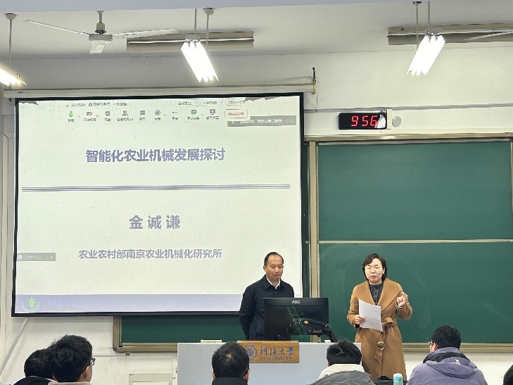 金教授从智能化农业机械发展的基础、当前智能农机发展分析、农业机械智能化技术需求、发展路径四个方面为两校两个专业的同学们呈现了精彩的专业课程。课后,两校学生围绕课堂内容关键知识点进行提问,金老师为同学们答疑释惑,获得了强烈反响。